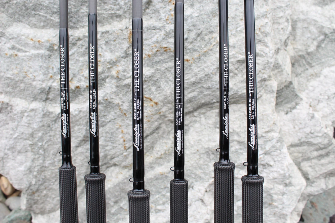 The sliding ring model of the 6-12lb rod allows full range of handle positioning on that same amazing 6-12lb blank. This rod will accommodate light & med weight floats for steelhead. Perfect mod/fast action for successful hookset with jig, bead and bait float fishing.