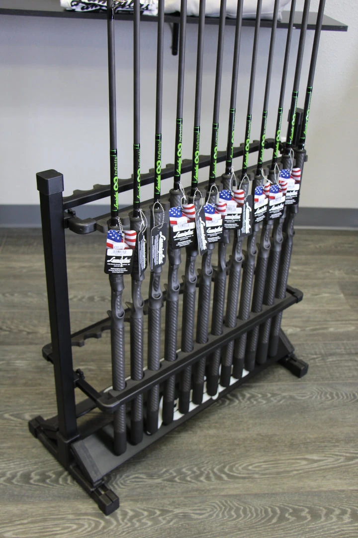 Lightweight Aluminum frame make the Lamiglas 24 Rod Rack the ultimate portable rod rack. Designed to accommodate all sizes of fishing rods from larger saltwater models to fly rods in the full upright position.