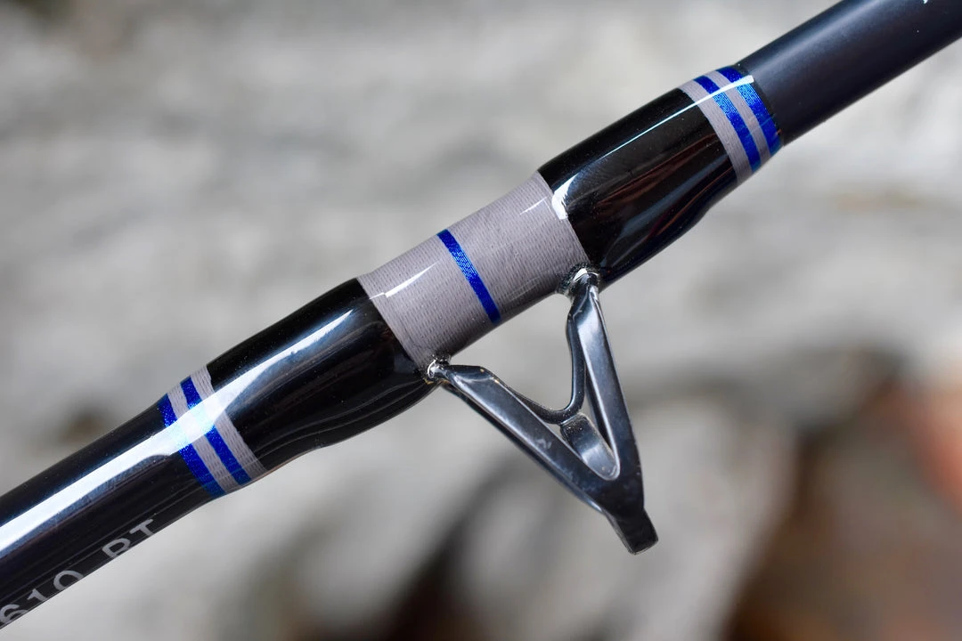 Powerful 6’6″ rod that works well for trolling stripers, tuna, mackerel, dorado and other saltwater species. Also excellent for oversized sturgeon fishing.