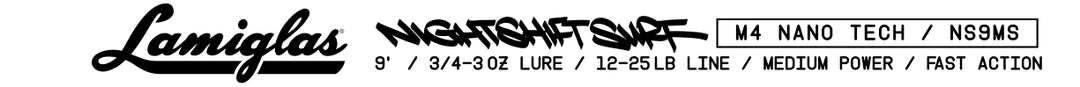 The all new Nightshift Surf series. Inspired by the Surfcasters Journal “Nightshift Crew”. This is the next level of Lamiglas Surfcasting. Built with a brand new M4 Nano Tech Resin System and Multi Directional Layered Carbon Fiber, designed to handle the most demanding surfcasting situations. Lightweight, fast action surf rods that will still fully load up when leaning into a cast or fighting a fish, but because of the M4 Nano material have a lightning fast recovery.